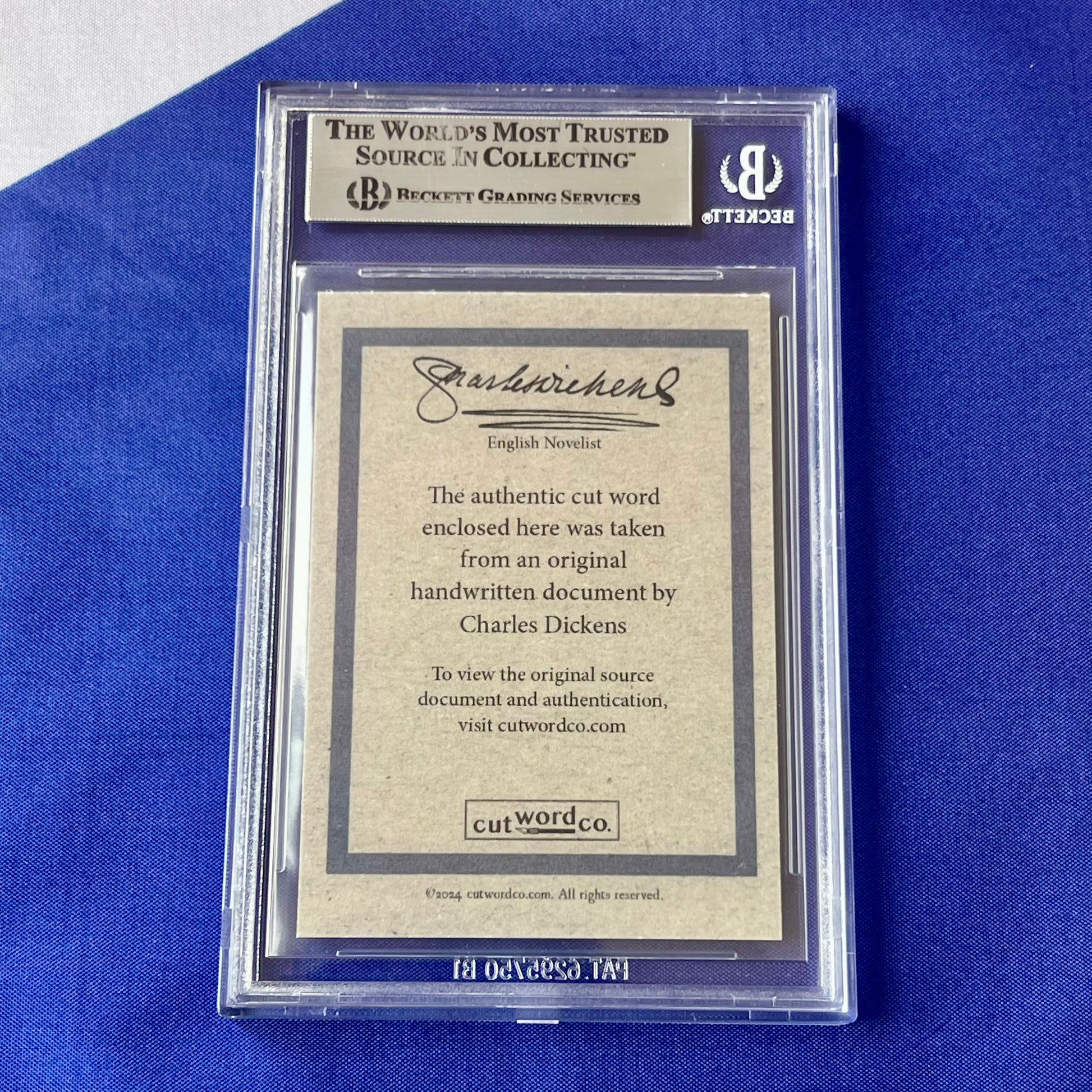 An exclusive CutWordCo Limited Edition, this is the first set of Dickens words encapsulated by Beckett ever offered for sale! Each handwritten word was carefully removed from a letter written by Charles Dickens in September of 1866! An exceptional chance to own an authentic piece of penmanship from the same hand that wrote some of the world's most famous novels!