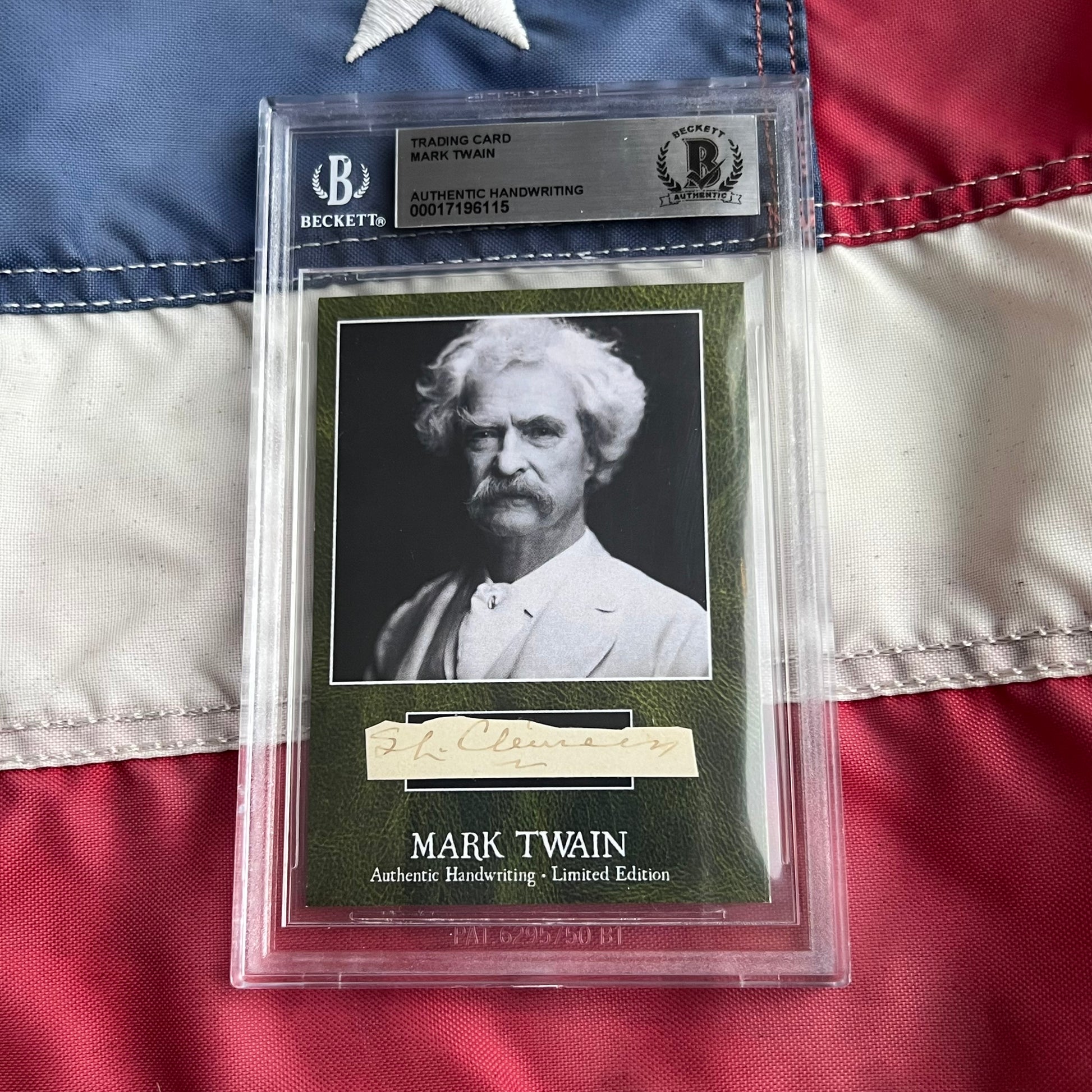 Offered for the first time ever – genuine handwritten words from Mark Twain, the pen name of American writer and humorist, Samuel Langhorne Clemens, authenticated and encapsulated by Beckett.