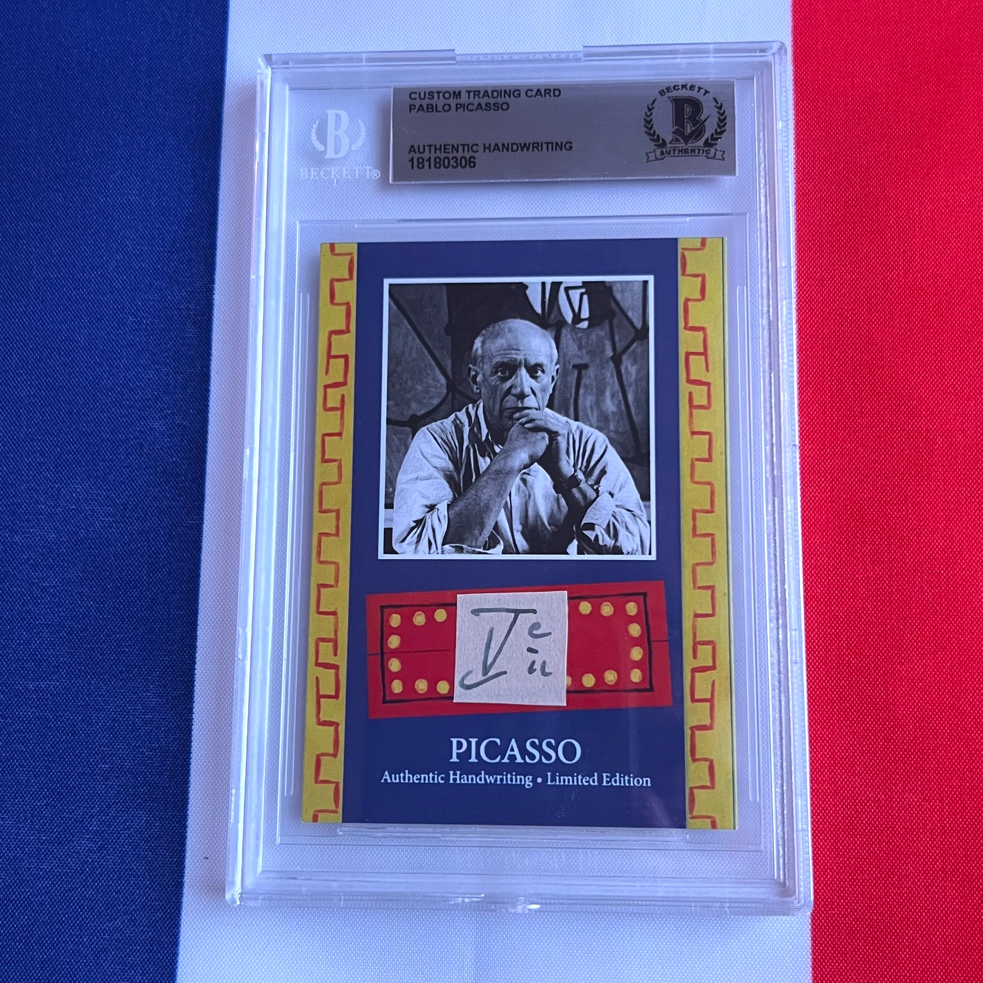 Offered for the first time ever – genuine handwriting from the iconic Spanish artist and modern art master, Pablo Picasso, authenticated and encapsulated by (BAS) Beckett Authentication Services. Each handwritten word was carefully removed from a handwritten letter Picasso sent to his friend and banker, Max Pellequer.